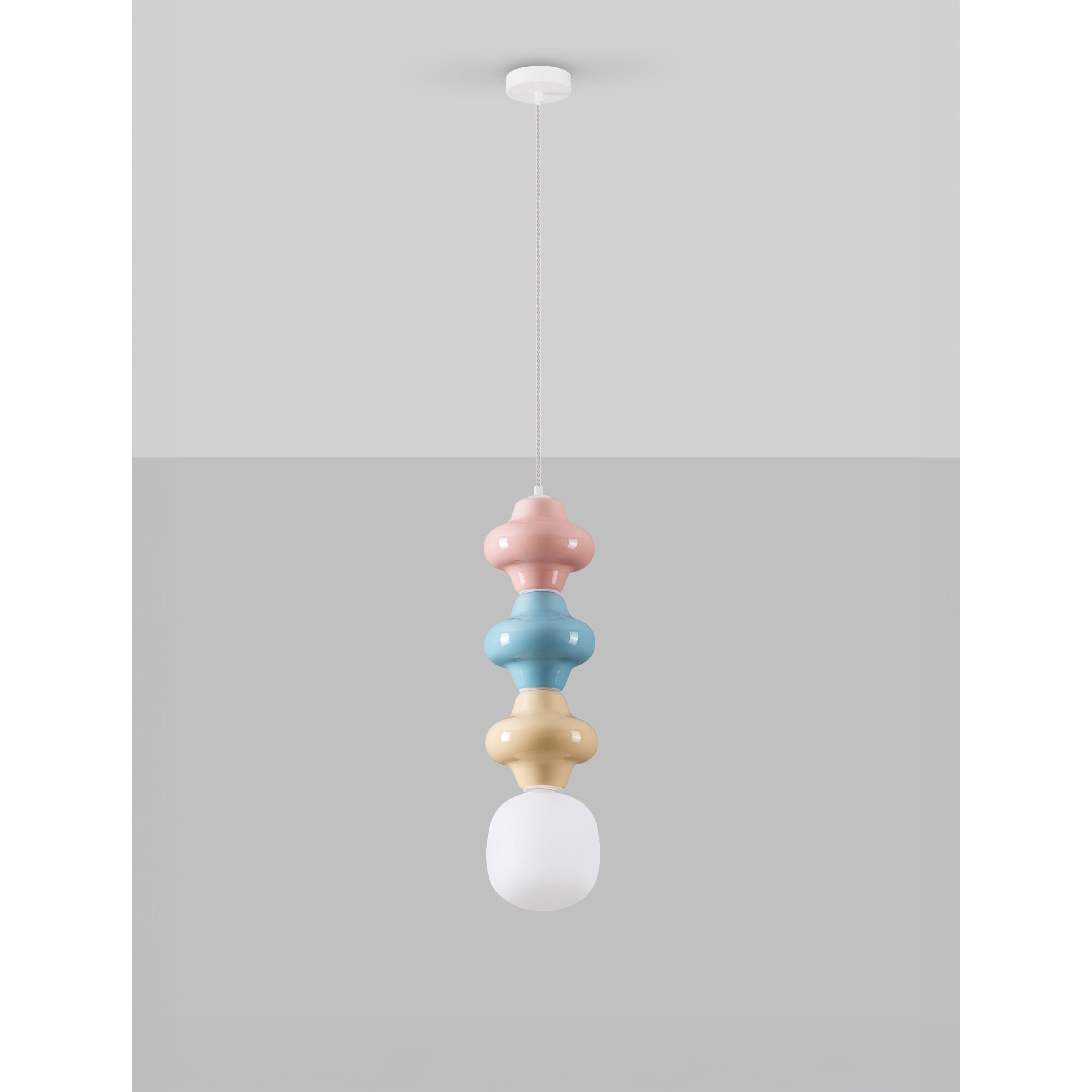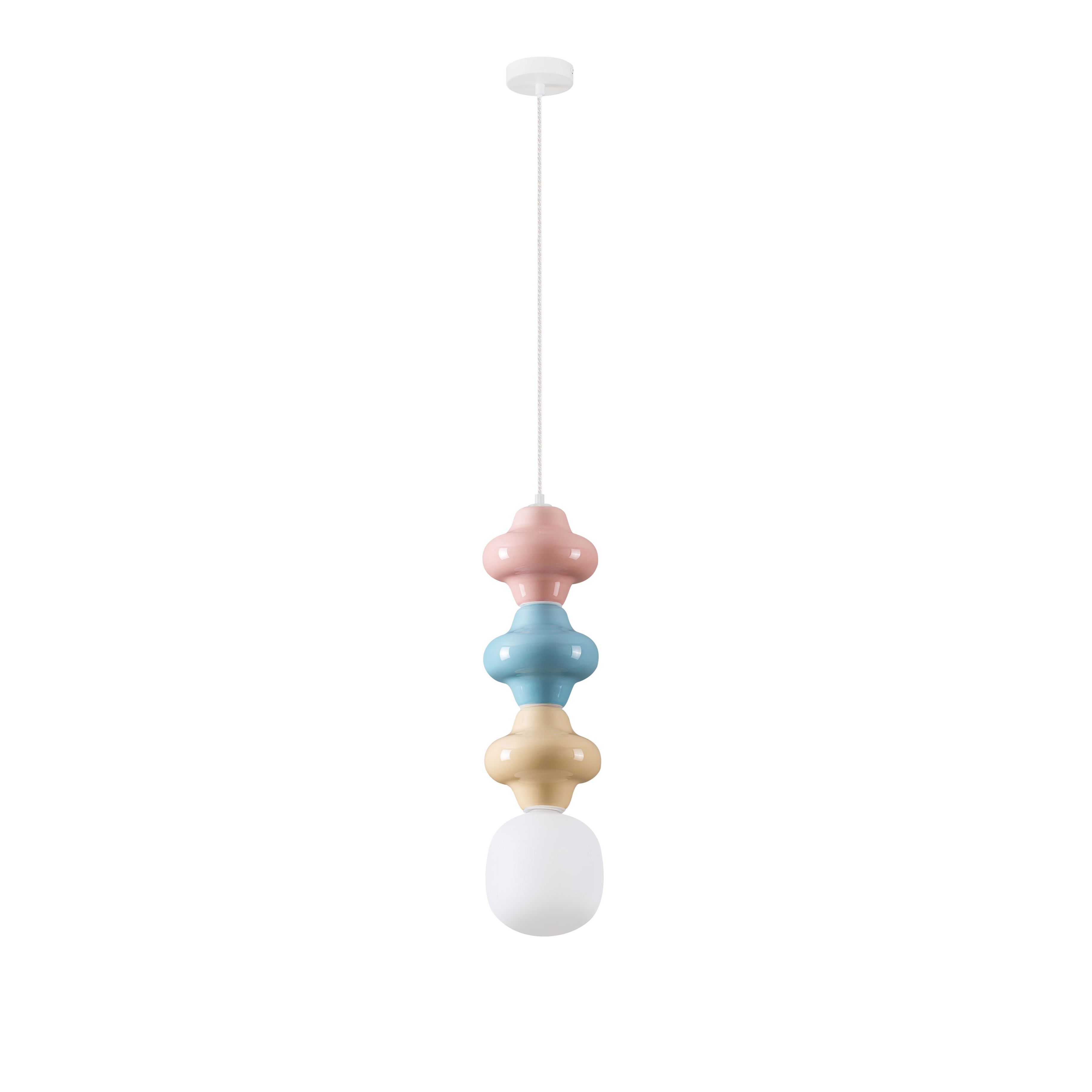 Couleurs | rose, bleu, jaune, blanc et verre opale |